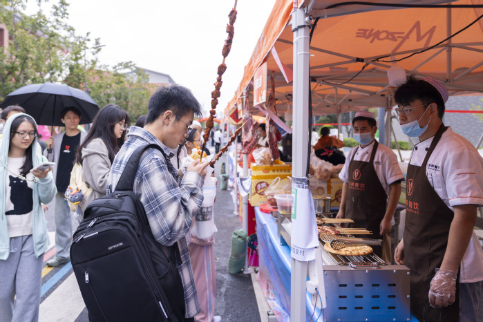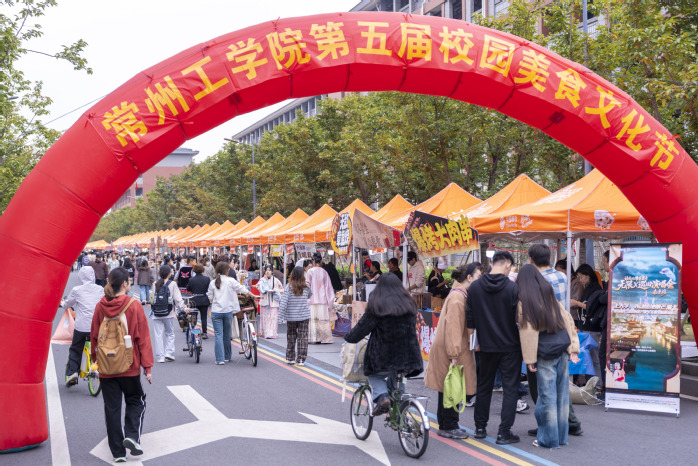 2025年10月30日,学校钟楼旁、霁樱路上人声鼎沸,香气四溢,一场味蕾与青春的盛宴在此拉开帷幕。以“味蕾飞扬,青春共享,品味常工‘食’尚”为主题的第五届校园美食文化节在秋意正浓、桂香扑鼻的美好时节中盛大开幕。