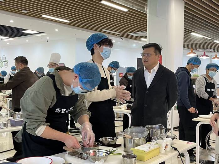 “校园烟火气,最抚学子心。”11月12日下午,静湖餐厅一楼暖意融融、香气浮动,由我校后勤管理处、学生工作处联合江苏翌桦餐饮有限公司精心策划的“妙手烹佳肴 共享好食光”第六期厨艺小课堂温馨开课。40余位来自不同学院的学子怀揣对美食的热爱齐聚一堂,校党委副书记、校长张兵亲临现场观摩指导,与同学们共同感受烹饪的乐趣与劳动的喜悦。
