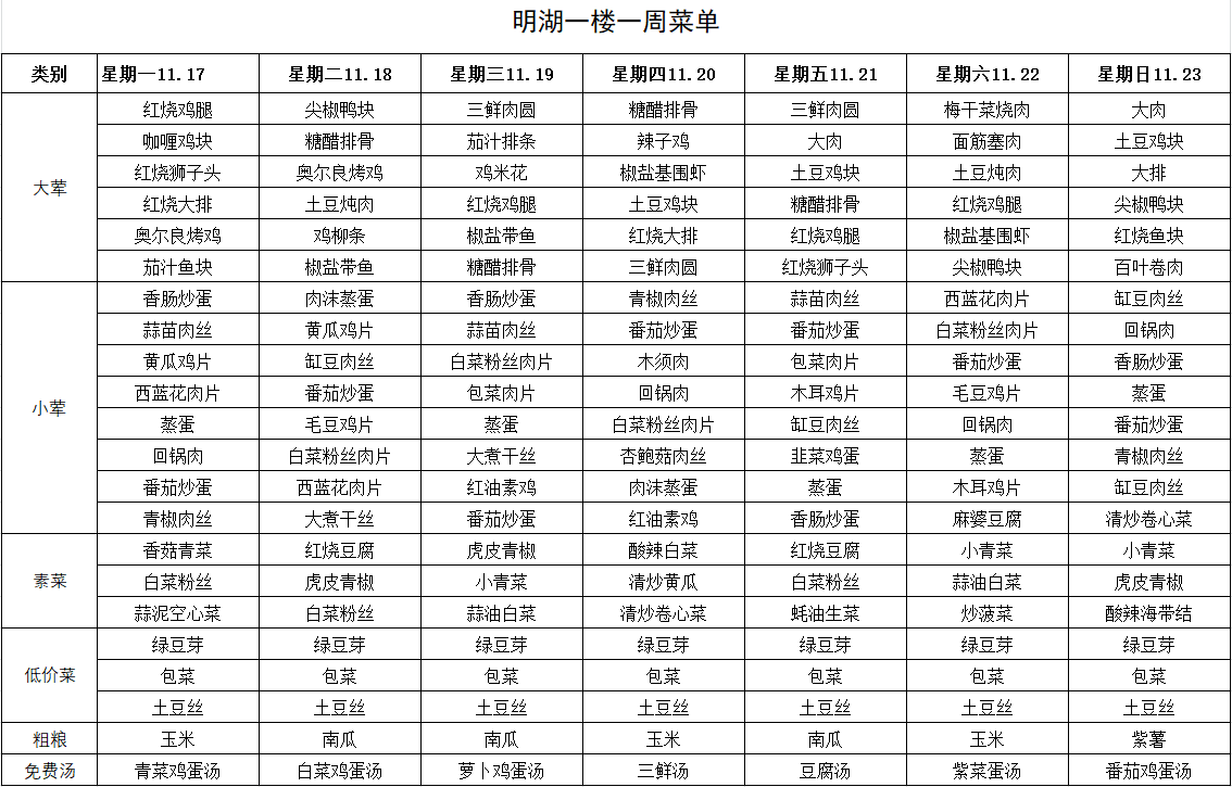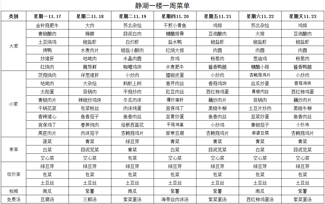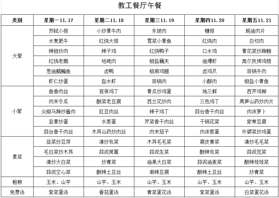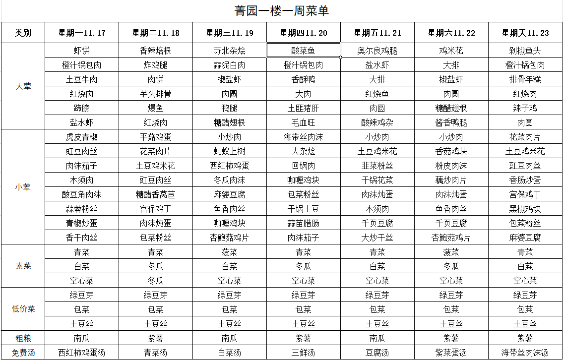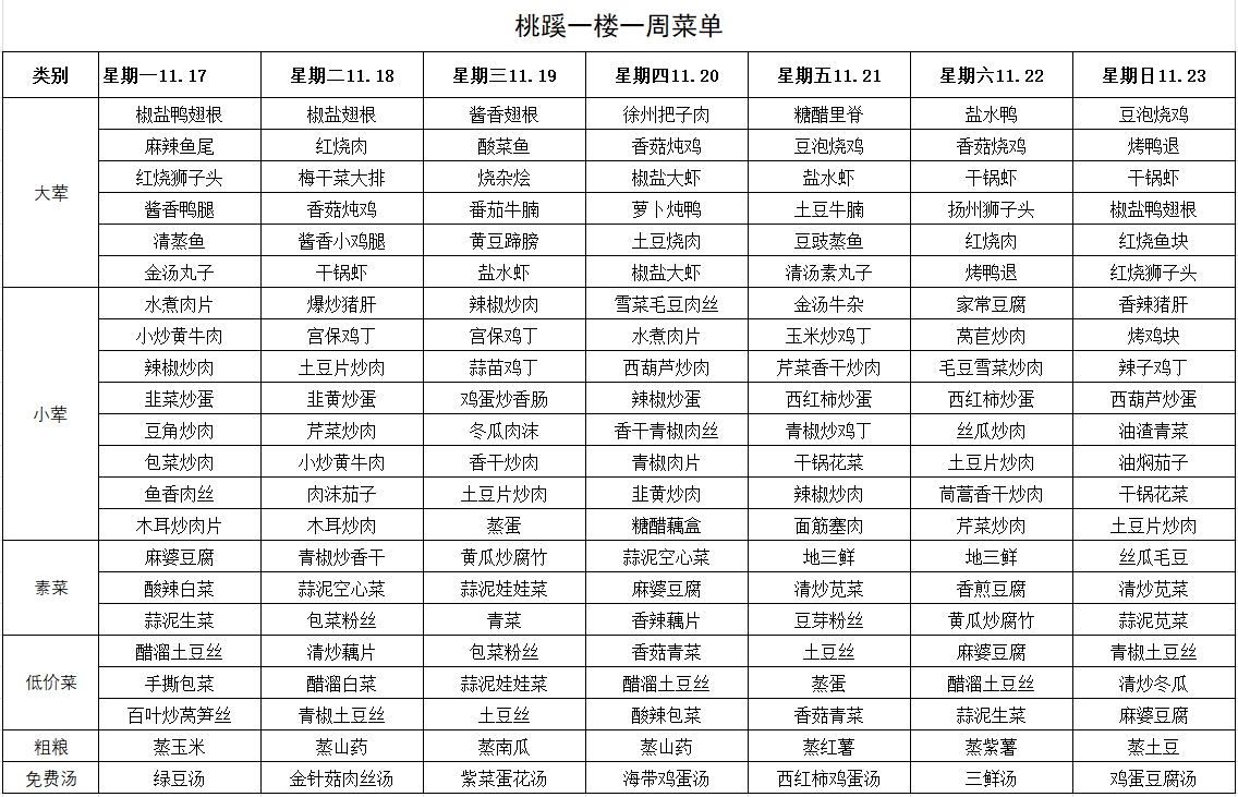每周菜单(11月17日—11月23日)