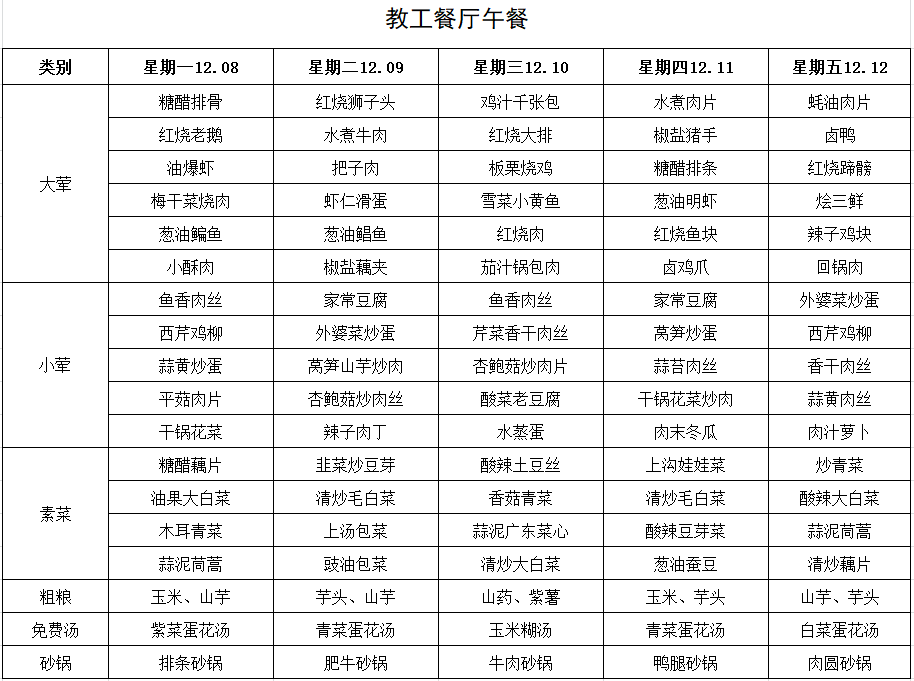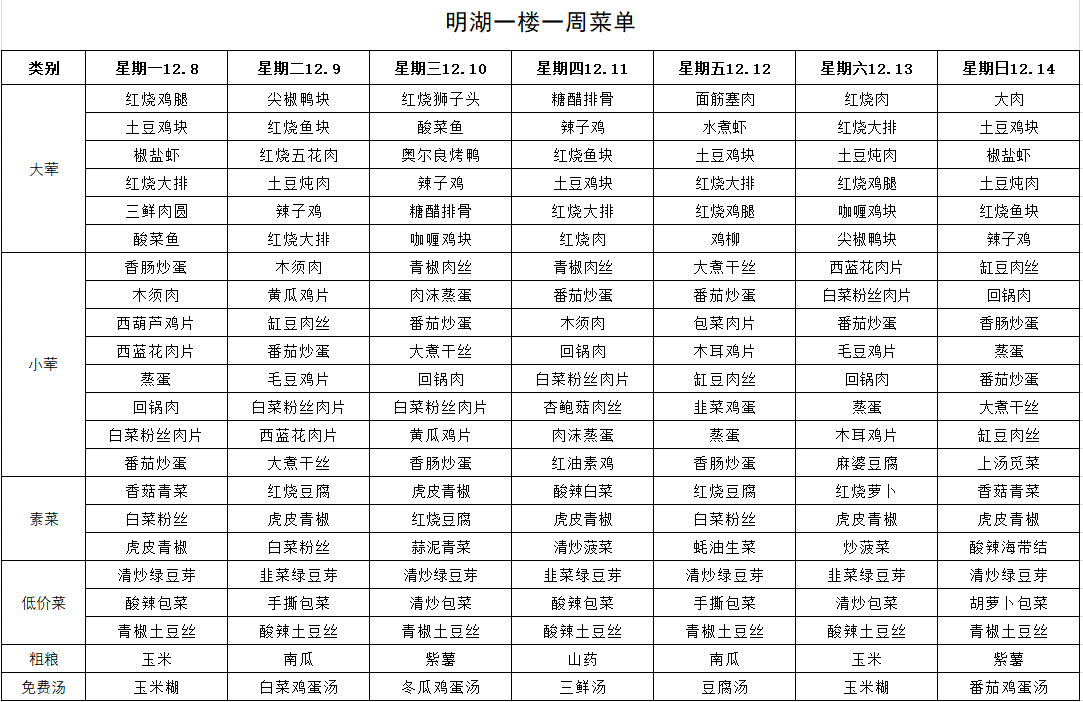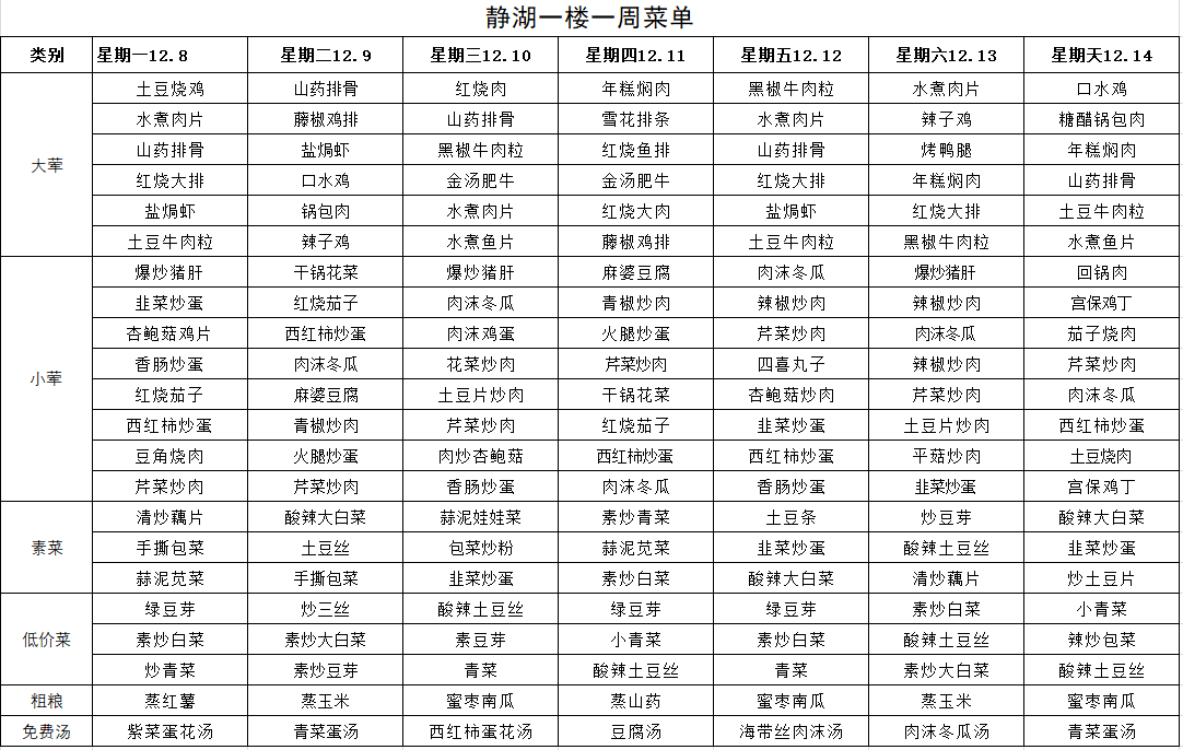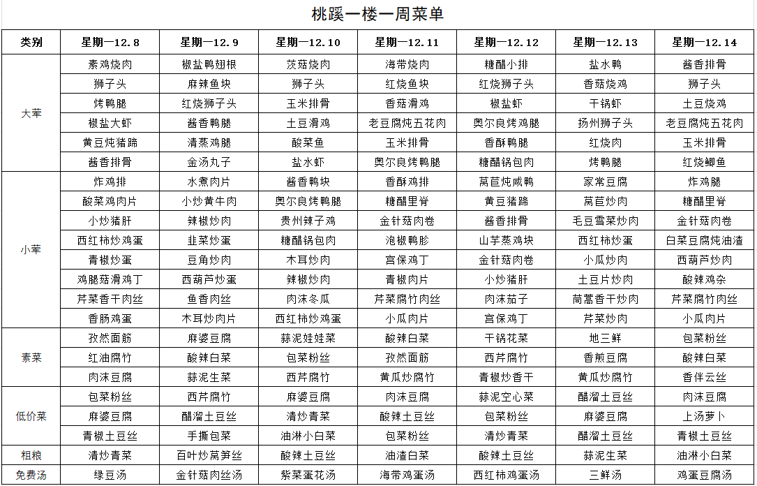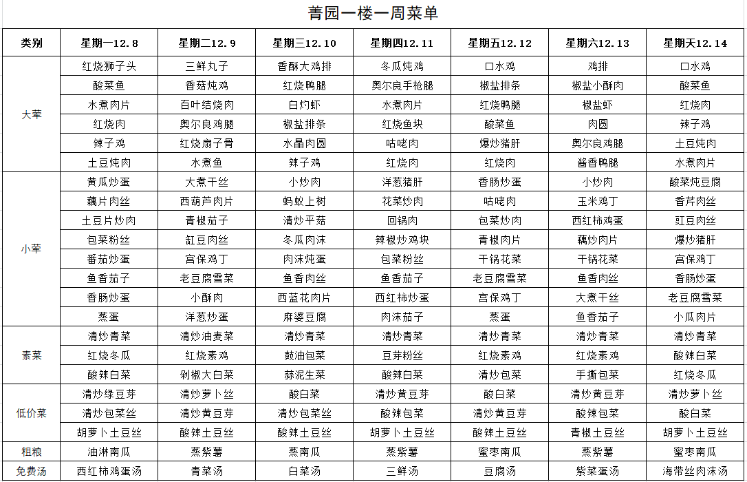 每周菜单(12月8日—12月14日)
