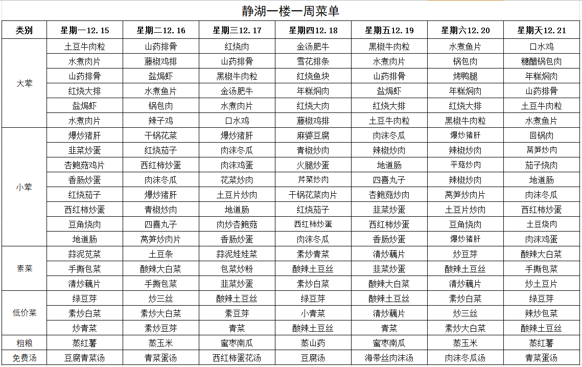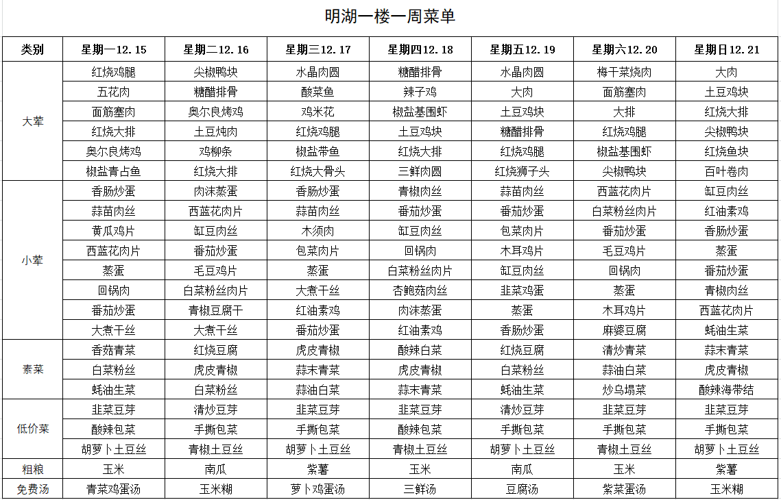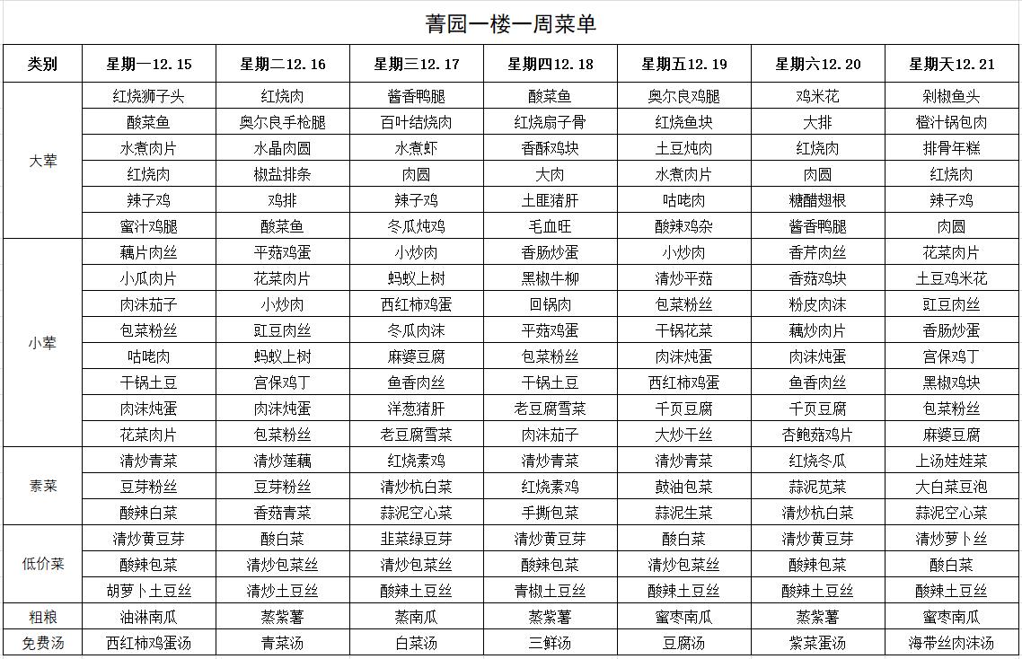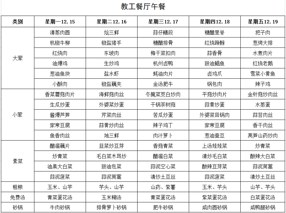 每周菜单(12月15日—12月21日)