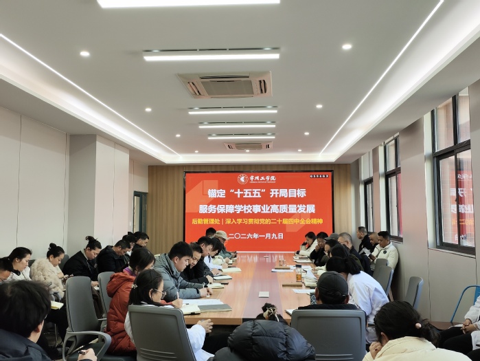 为深刻领会、全面学习把握党的二十届四中全会精神,锚定“十五五”开局目标,推动学校后勤服务保障工作提质增效,2026年1月9日,后勤管理处组织全体职工及部分托管项目服务单位管理人员参加部门班子成员学习贯彻党的二十届四中全会精神心得分享会。
