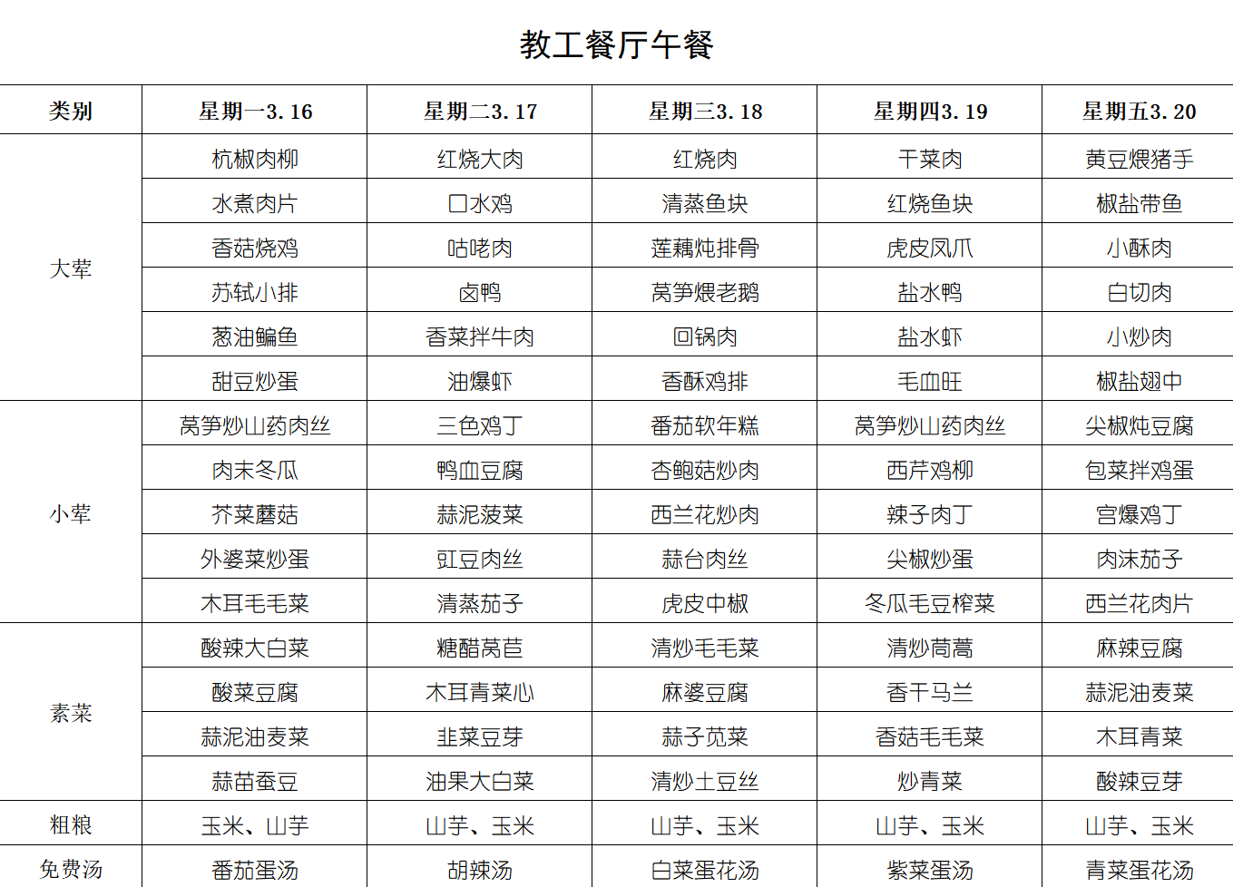 每周菜单(3月16日-3月22日)