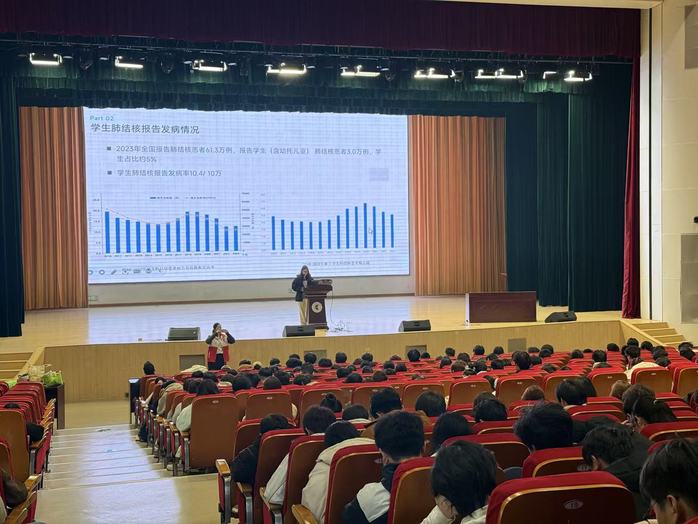 广场活动结束后,分别在文化艺术中心和图书馆报告厅开展面向25级各班班委、宿舍长的讲座科普,常州市疾控中心、新北区疾控中心专家及我校校医担任主讲,讲解结核病、艾滋病的防控知识要点,讲座期间的提问环节互动频繁,进一步深化了同学们对防控知识的理解与掌握。