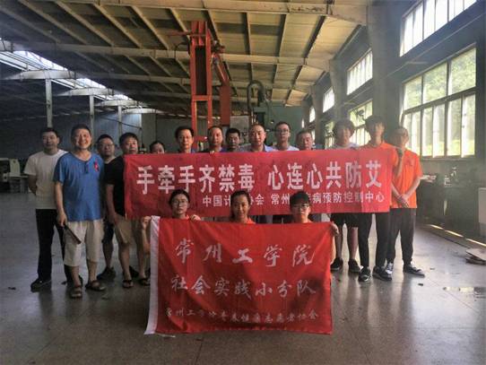 7月13日上午,青春健协骨干到常州工学院科技产业园开展禁毒防艾宣讲进工厂活动。首先,对工友们进行禁毒、防艾问卷调查。随后,协会主持人陈玥汐向工人们普及了毒品种类和危害、艾滋病传播途径及易感人群等禁毒防艾知识,并通过真实具体的案例引起在场工友们的重视。现场,协会成员回答了工人们的疑问,并以情景剧的形式演示了日常生活中应如何对艾滋病患者表示关心,也让大家明白一些行为不会造成艾滋病的传播,无需谈“艾”色变。活动最后,工友们在活动宣传横幅上签名,同时给工人分发了红丝带以及纪念品,让禁毒防艾观念深入人心。
